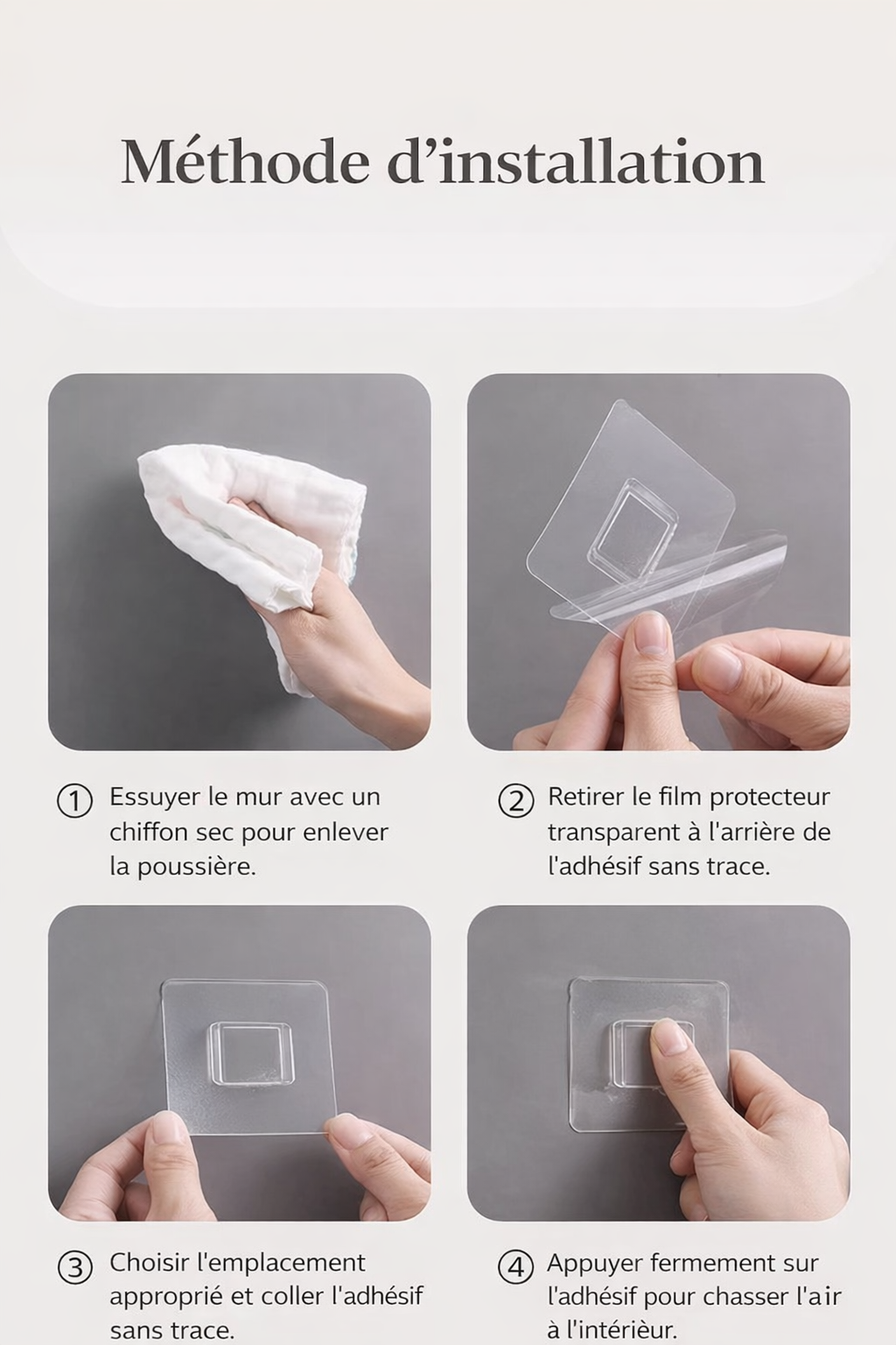 Son système sans perçage permet une installation rapide, sans outils et sans abîmer le mur. Il suffit de coller le support sur une surface propre et lisse, et le tour est joué. Idéal pour les maisons en location ou pour ceux qui ne veulent pas percer.